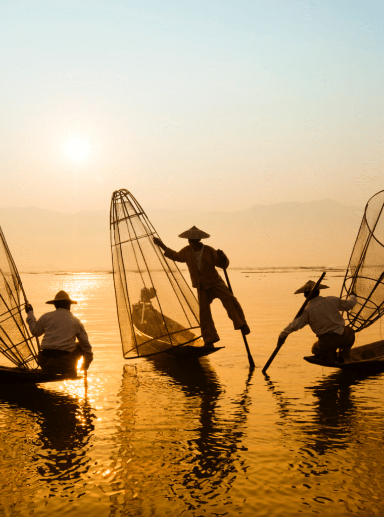 Nichée en altitude, la région du lac Inlé offre une atmosphère paisible et tempérée. Les jardins flottants, les pêcheurs à la technique ancestrale et les villages sur pilotis composent un décor unique.